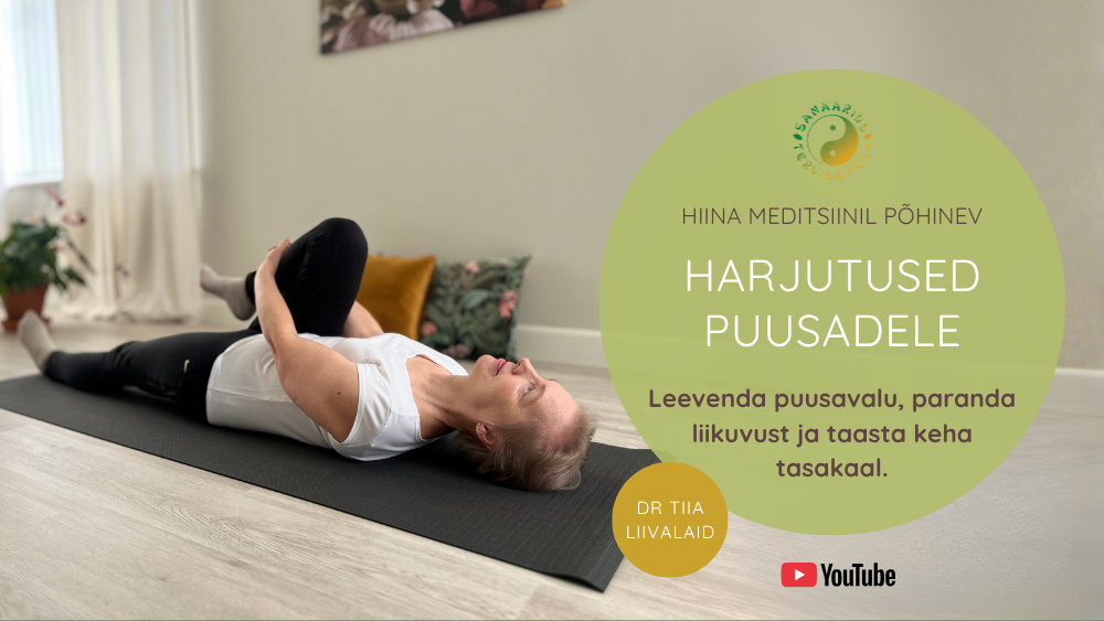 VIDEOSALVESTUSED TERVISE JA TASAKAALU TOETAMISEKS VAATA LOENGUID Sügavam arusaam keha toimimisest ja tasakaalust. VAATA TREENINGUID Praktilised harjutused, mida saad kohe teha. Hiina meditsiini loengud Vaata loengut Vaata loengut Vaata loengut Vaata loengut Vaata loengut Tervist toetavad treeningud Alusta treeninguga Alusta treeninguga Alusta treeninguga Tagasiside Aitäh selle laupäevase mõnusa tunni eest! Jäin tunniga väga rahule ja tund ületas minu ootused. Arvasin, et teeme vaid harjutusi silmadele, kuid mulle meeldis, et see sisaldas veel muudki head ja kasulikku. Sain tunnist igapäevaseid näpunäiteid. Katrin S Laupäevane tervisehommik, harjutused silmadele / veebruar 2025